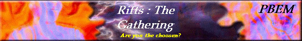 The Gathering is a PBEM being developed for people who love Palladium's RIFTS system. We are looking for gamers who seek a new challange and want to have a hand in determining the fate of Earth, as well as the rest of the multi-verse.